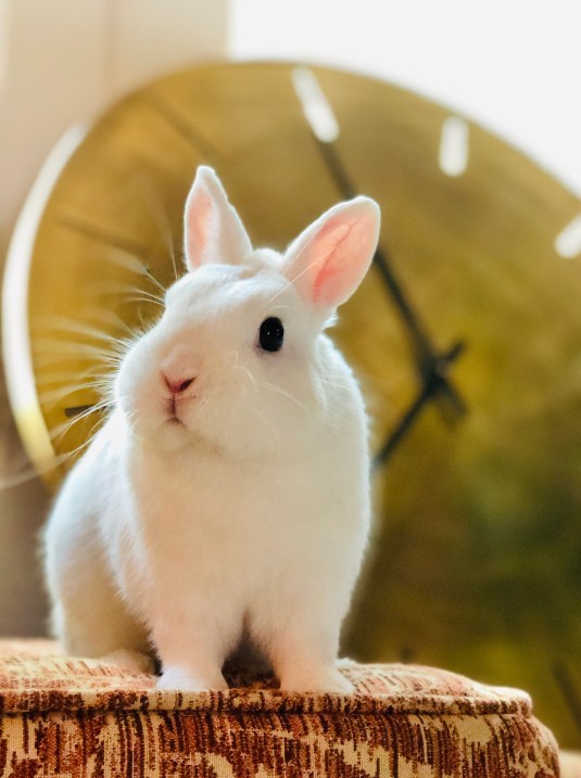 Despite growing up with my grandmother’s ever changing menagerie of pets from goldfish, to turtles, parakeets to chicks that grew into chicken soup for lunch, dogs from chihuahuas to poodles, etc, I never felt the desire to own a pet myself. I was clear about wanting children though, and when they begged me for a pet, I assured them most confidently they can have all the dogs and cats they wanted when they got their own apartments. Somehow my daughter succeeded in persuading me to compromise with a rabbit when her brothers flew the nest, but very soon after, her attention drifted to boys and friends and the rabbit got relegated as her dad’s bestie. He’s great company for me now that she’s left home, tirelessly staring with adoring eyes much of the day and happy to cuddle at night. You know I mean the rabbit, not the husband, right? 😉